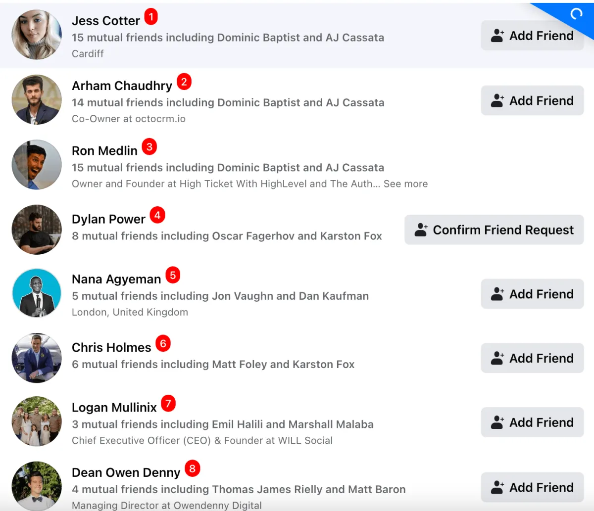 This is an important way to filter your most eager prospects and filter out general time wasters. Ask them why they requested your friendship before you accept!