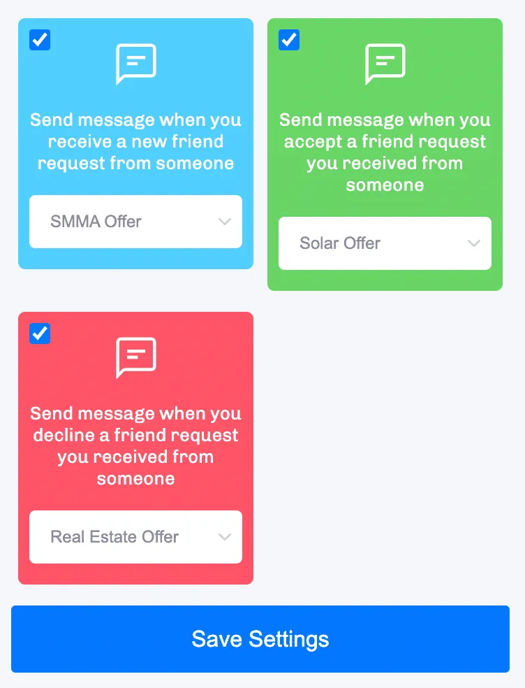 LeadBook will separate qualified buyers from time wasters using the Keyword & Negative Keyword Feature. Select which job titles you want to target or avoid before LeadBook sends them a friend request and personalized message.